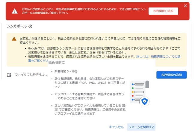 アドセンスにおけるシンガポールの税務情報の手続き